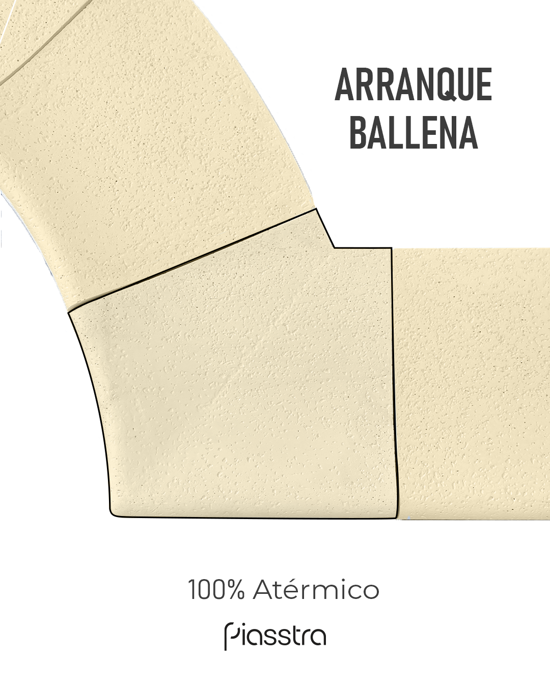El arranque ballena atérmico es una pieza esencial dentro de los pisos atérmicos para piscinas, especialmente en diseños con arco romano, donde permite iniciar correctamente la curvatura en los extremos del perímetro.